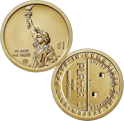 Το αμερικανικό καινοτόμο νόμισμα του 1 δολαρίου που αντιπροσωπεύει το Νιου Χάμσαϊρ τιμά την εφεύρεση της πρώτης κονσόλας παιχνιδιών για το σπίτι από τον Ραλφ Μπάερ.