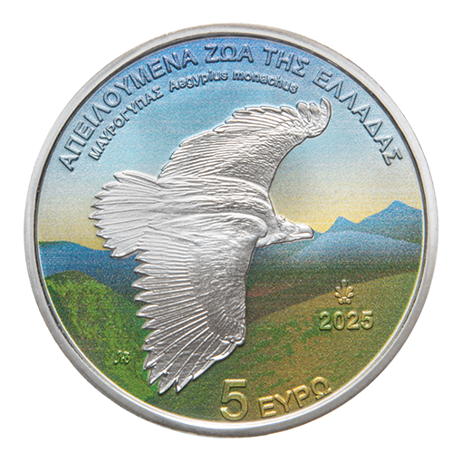 5 EURO SILVER COIN PROOF BLACK VULTURE (AEGYPIUS MONACHUS)